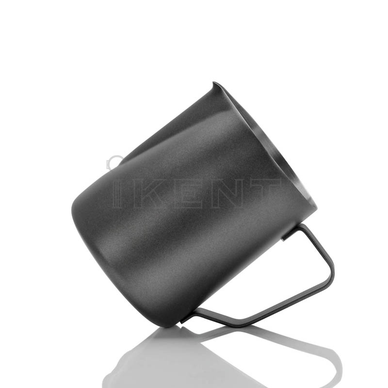 1. The ikent coffee milk pitcher black frothing jug stainless steel steaming coffee jug is made of durable high-quality stainless steel. The product is easy to clean and easy to make a cappuccino.