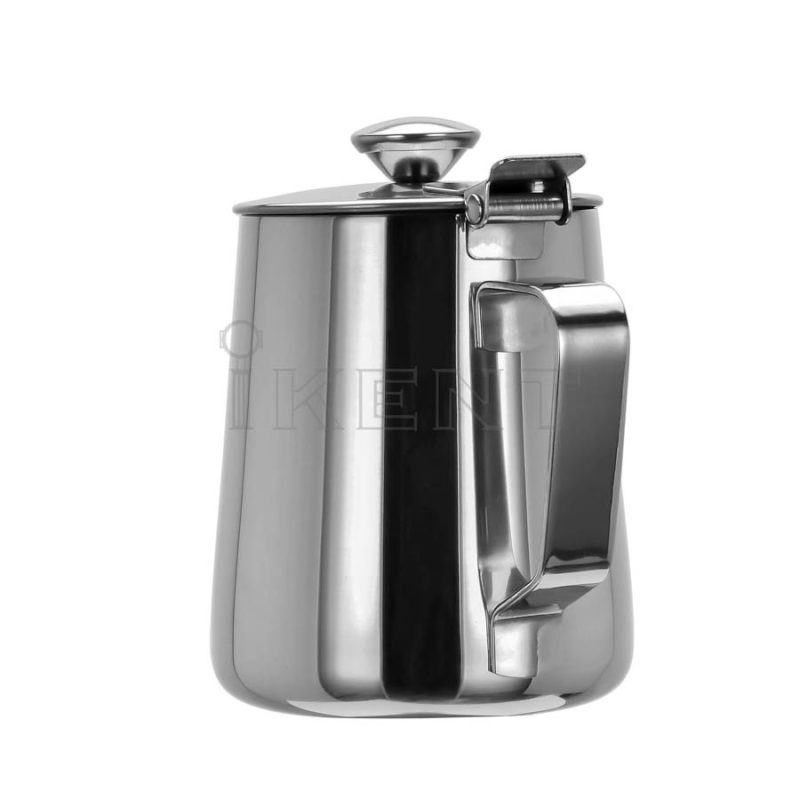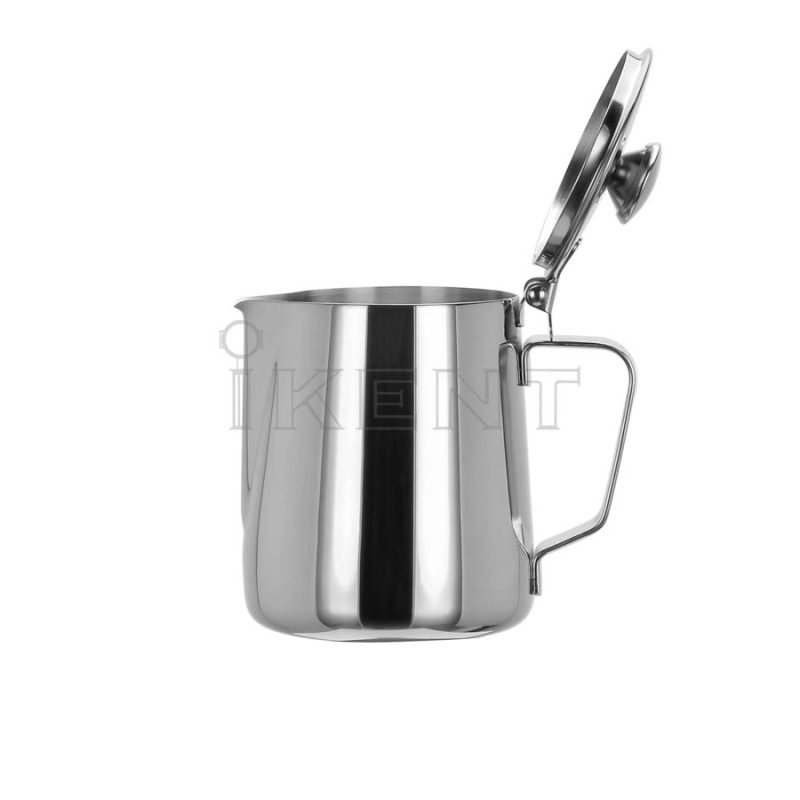 MK005 ikent coffee stainless steel milk steam jug sugar tea coffee pitcher with lid for espresso cappuccino accessories